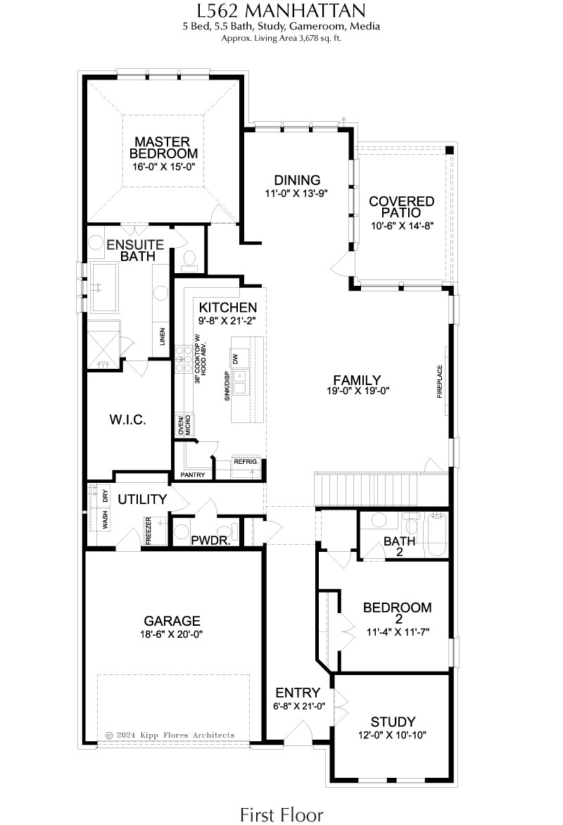 The Manhattan offers a sophisticated open-concept layout designed for modern living and effortless entertaining. A private study provides a quiet space for work or focus, while the family room, anchored by a cozy fireplace, serves as the heart of the home. The master bedroom features a spacious walk-in closet and his and her vanities, creating a luxurious personal retreat. Upstairs, dedicated game and media rooms provide versatile spaces for recreation and relaxation. With all bedrooms offering private bathrooms, the Manhattan combines comfort, functionality, and refined style throughout.