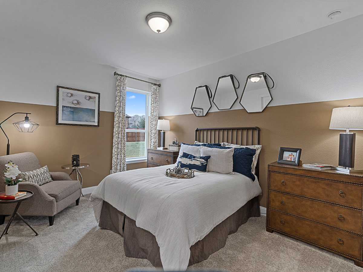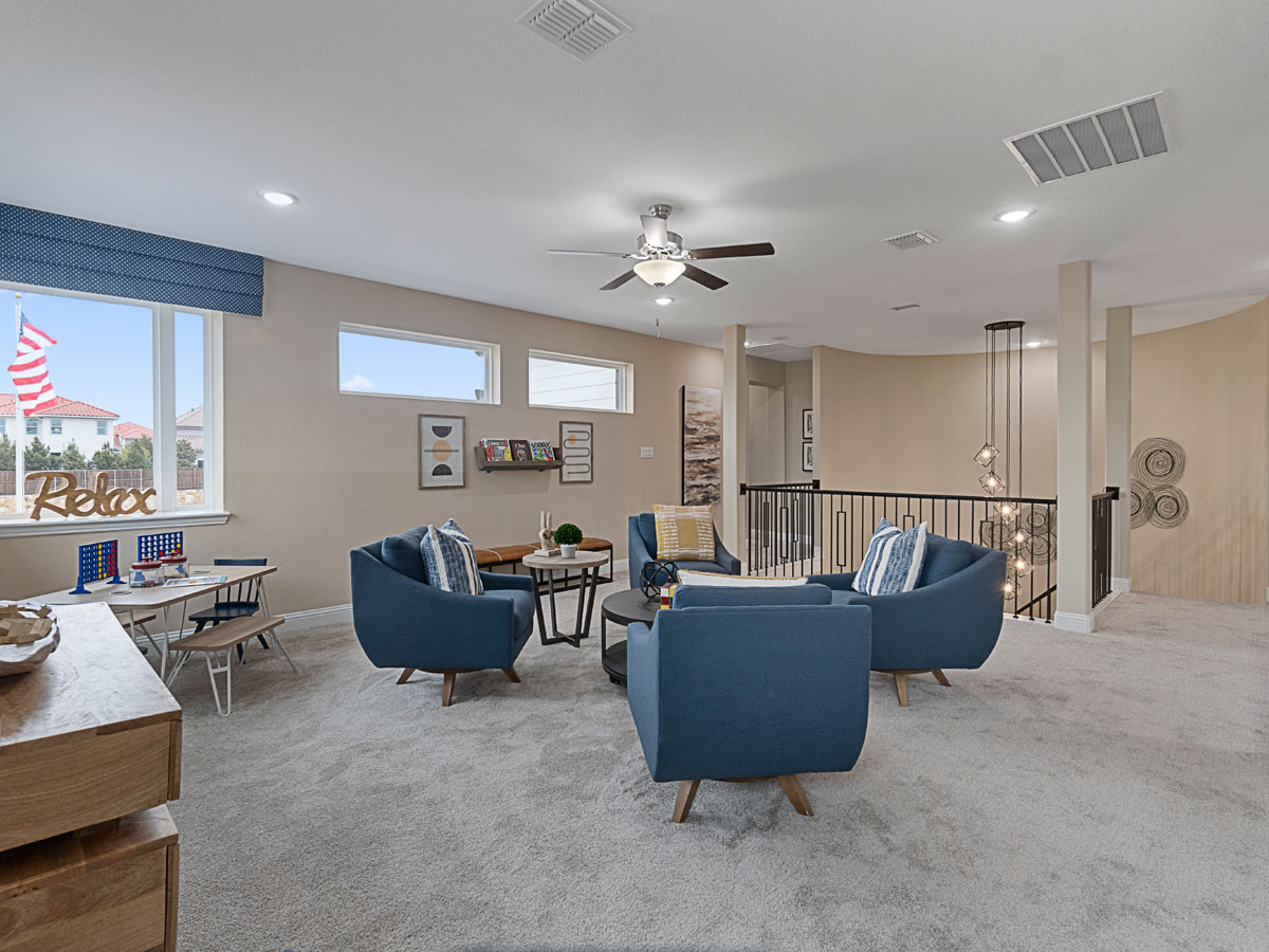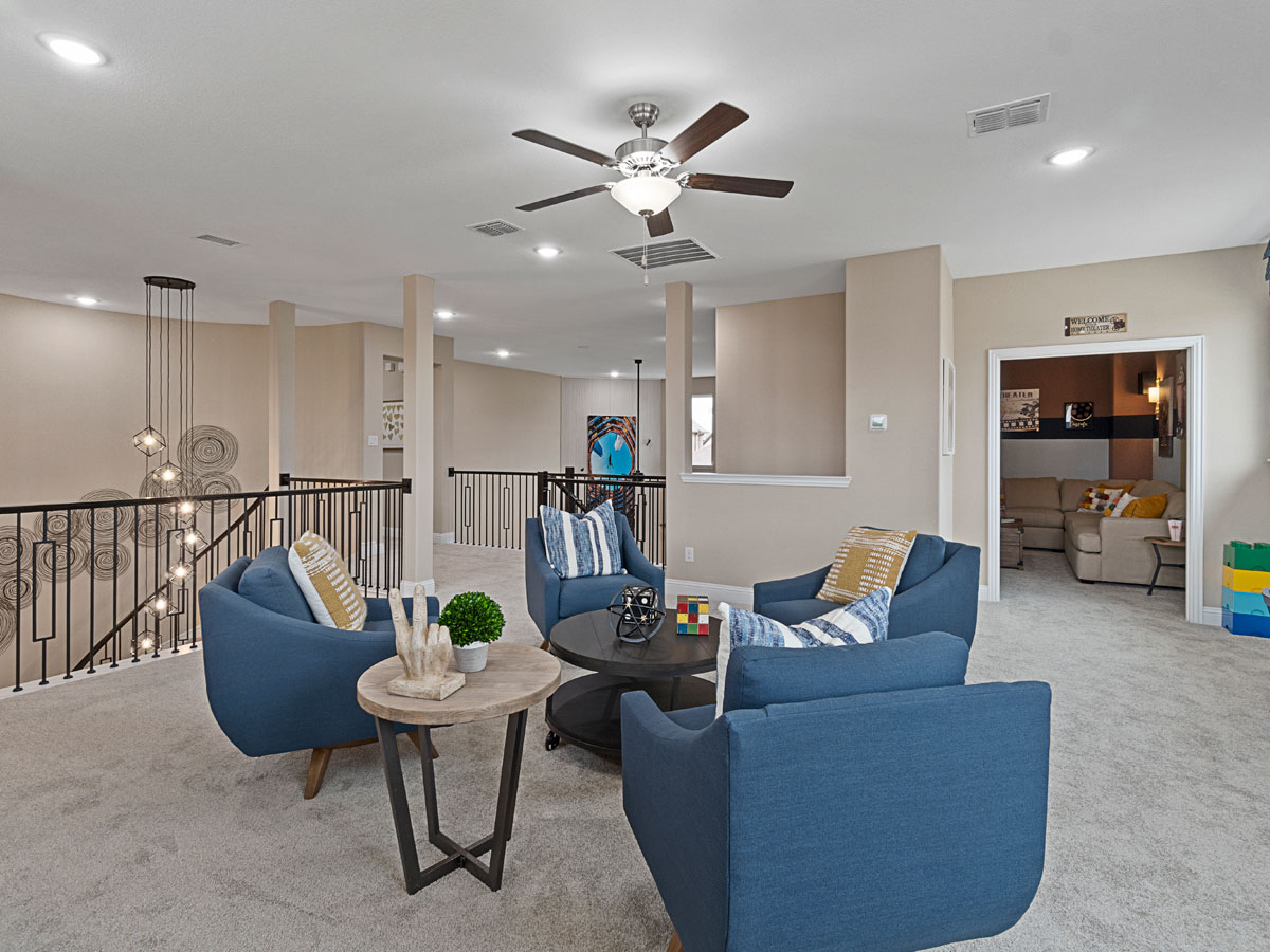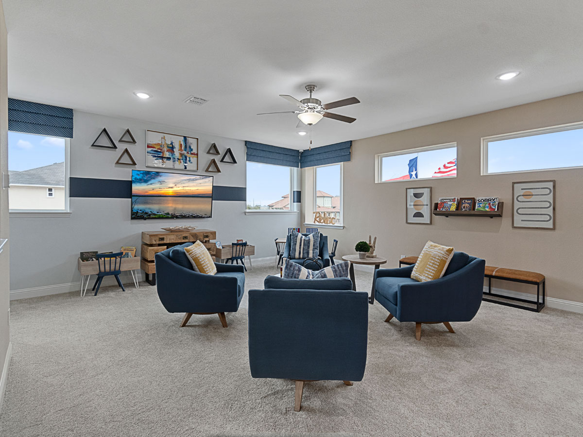The Middleton offers a spacious and thoughtfully designed layout that blends comfort and style. The family room, anchored by a cozy fireplace, serves as the heart of the home, while the master bedroom features dual walk-in closets and his and hers vanities for a luxurious personal retreat. Upstairs, dedicated game and media rooms provide versatile spaces for entertainment and relaxation. With a three-car garage and well-appointed living areas throughout, the Middleton delivers an elevated living experience perfect for both everyday life and gatherings.