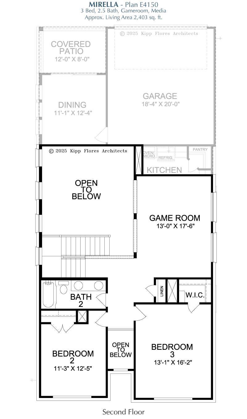 The Mirella features a bright open-concept layout designed for modern living and seamless entertaining. A private study provides a quiet space for work or focus, while the master bedroom includes a spacious walk-in closet, creating a comfortable personal retreat. Upstairs, a dedicated game room and a bathroom with a double vanity offer versatile spaces for recreation and everyday convenience. The covered patio extends the living area outdoors, providing the perfect spot for relaxation or casual gatherings. Thoughtfully designed, the Mirella combines style, functionality, and comfort throughout.