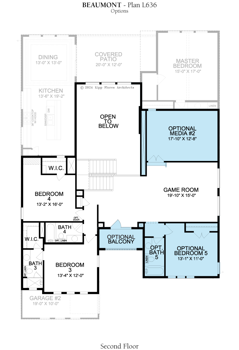 The Beaumont is designed to support contemporary living with a thoughtful balance of comfort, style, and functionality. A private study provides a dedicated space for work or quiet moments, while the open layout creates an inviting atmosphere for everyday living and entertaining. The master bedroom is enhanced by his-and-hers walk-in closets, offering both space and organization. Upstairs, the game room and media room provide versatile areas for relaxation and entertainment. The Beaumont delivers a well-crafted home that adapts effortlessly to both daily routines and special occasions.