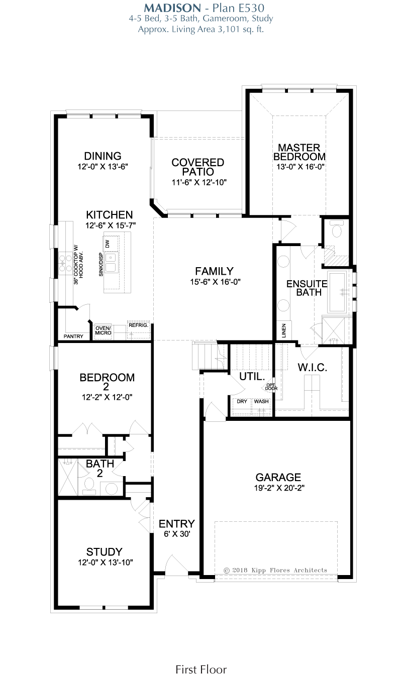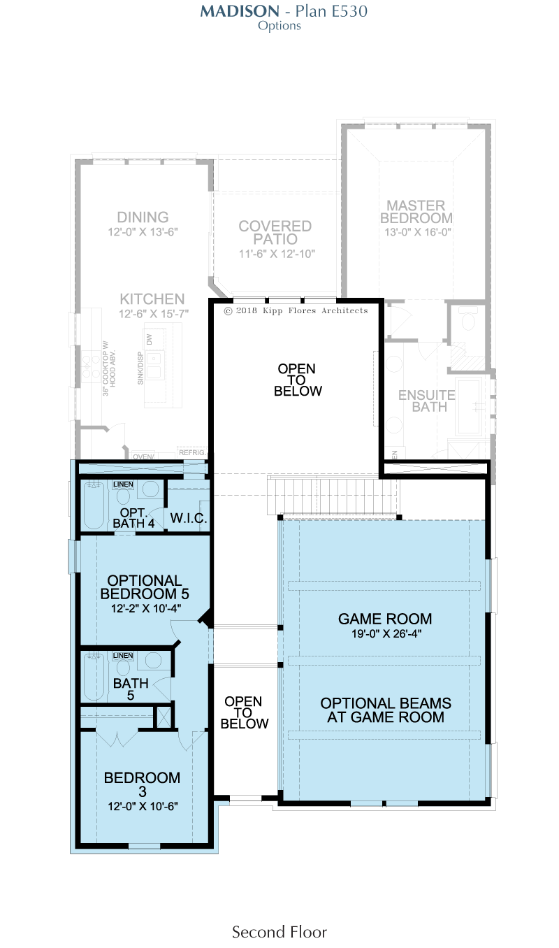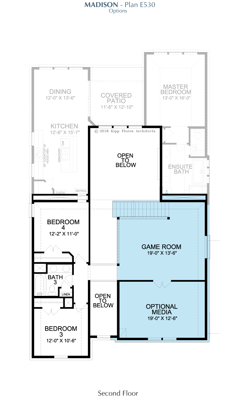 Bright and welcoming, the Madison is designed to support both relaxation and activity. An open living area encourages connection, while a private study offers a calm escape for work or reflection. The game room adds flexibility for leisure, and the primary suite includes a generous walk-in closet for everyday comfort. A covered patio expands the home outdoors, perfect for hosting or enjoying peaceful moments outside.