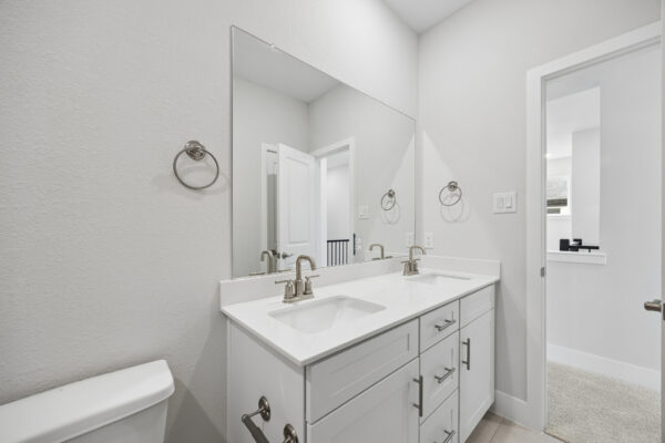 Duets 411 offers the perfect blend of style, light, and functional living in a townhome layout. Expansive windows on all walls fill the home with natural light, creating an inviting and airy atmosphere. The master bedroom features his-and-hers sinks and a spacious walk-in closet, providing both comfort and organization. A dedicated game room adds a versatile space for recreation or relaxation. Duets 411 delivers a thoughtfully balanced home that feels open and bright while supporting everyday living and entertaining.